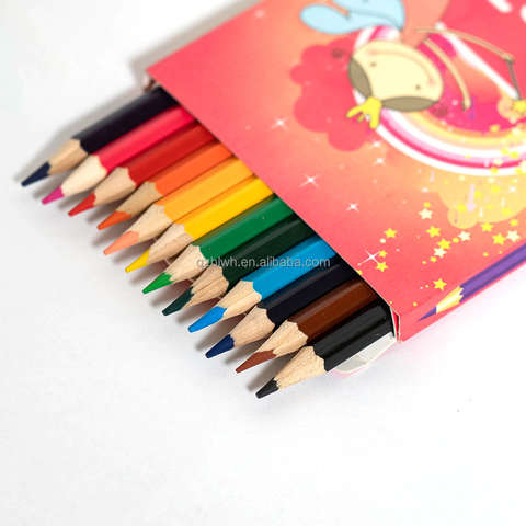 أقلام رصاص ملونة قصيرة صغيرة للأطفال علبة من 6 ألوان أقلام ملونة من الخشب الطبيعي والآمن تدعم شعارات مخصصة