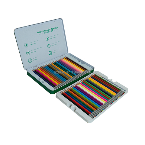 قلم رصاص خشبي سداسي اللون 48 لون في صندوق حديد من المصنع مباشرة تزويد الطلاب مجموعة أقلام رصاص ملونة للرسم