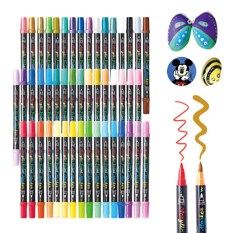 Stylo marqueur acrylique à double pointe à base d'eau 48 couleurs en plastique non toxique à séchage rapide pour l'art DIY Set de graffitis peints à la main